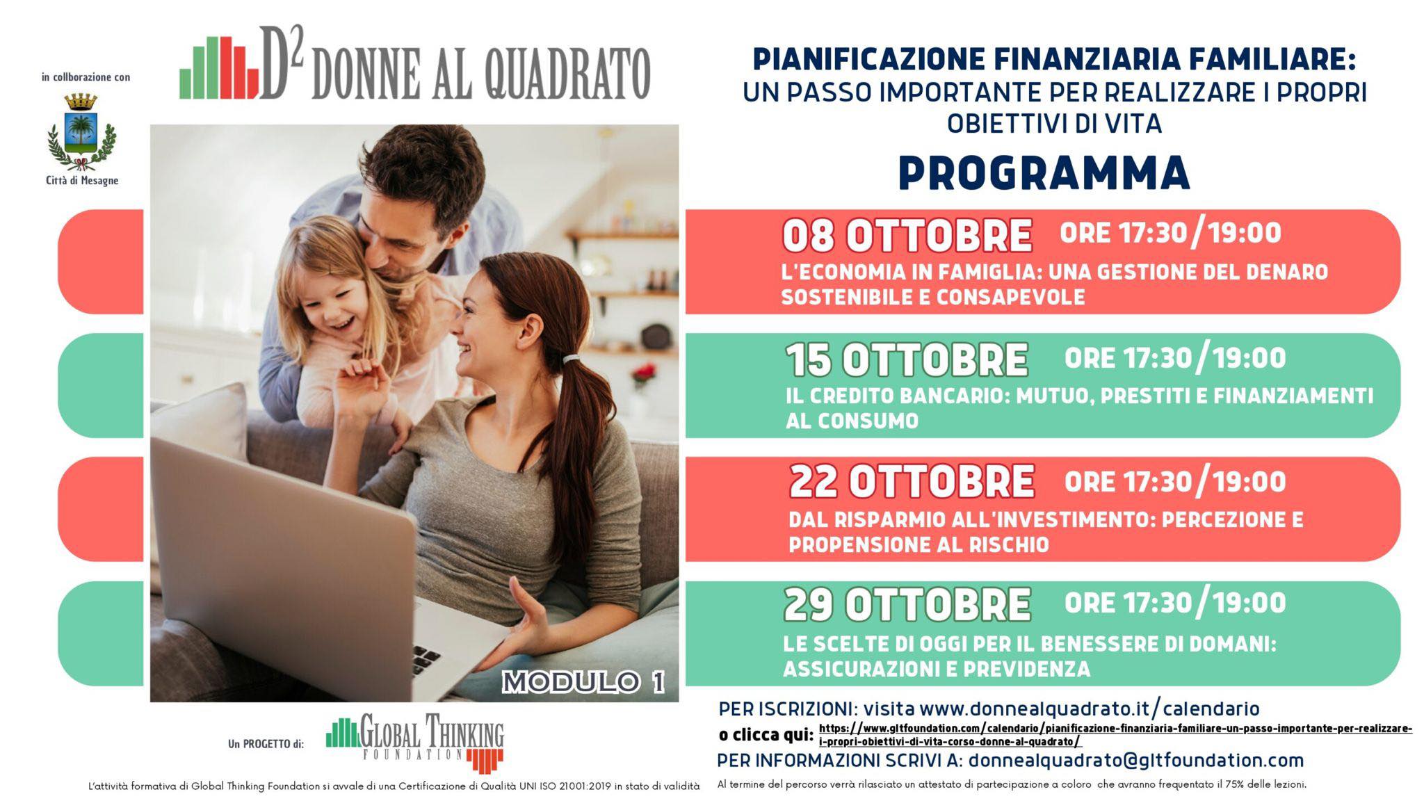 Il primo modulo, dedicato alla pianificazione finanziaria familiare, si articolerà in quattro incontri online gratuiti, condotti da professionisti del settore: